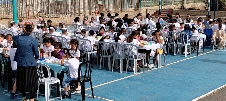 It was really interesting to watch the lively joining of the children in the course of the celebration; the children participated in the party each with their own temperament, yet the party was in good order. The staff fully gave from themselves everything towards the celebration. Our attention was especially drawn to the principal, how he gave everything from himself in leading this party and how the Rabbi of this school genuinely joined this celebration, not only by speaking – but he showed his tender care for the children by chatting with them.